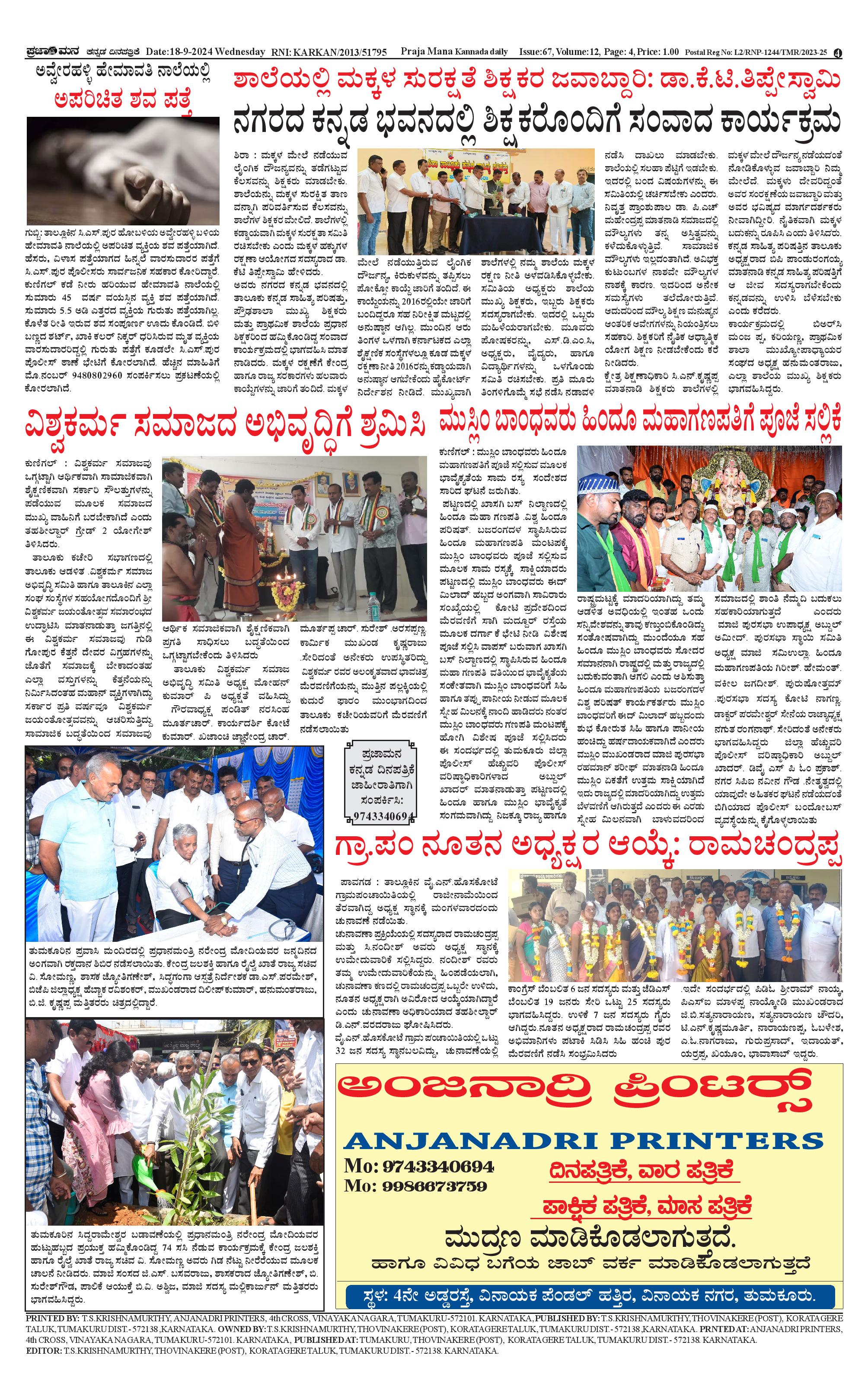 ಪ್ರಜಾಮನ 18 SEPTEMBER 2024 Page: 4 September 18, 2024 << First << 4 >> Last >> Page 1Page 2Page 3Page 4 × ಪ್ರಜಾಮನ 18 SEPTEMBER 2024 PRAJAMANA-page-001PRAJAMANA-page-002PRAJAMANA-page-003PRAJAMANA-page-004 << First << 4 >> Last >> PRAJAMANA-page-001PRAJAMANA-page-002PRAJAMANA-page-003PRAJAMANA-page-004 PRAJAMANA-page-004