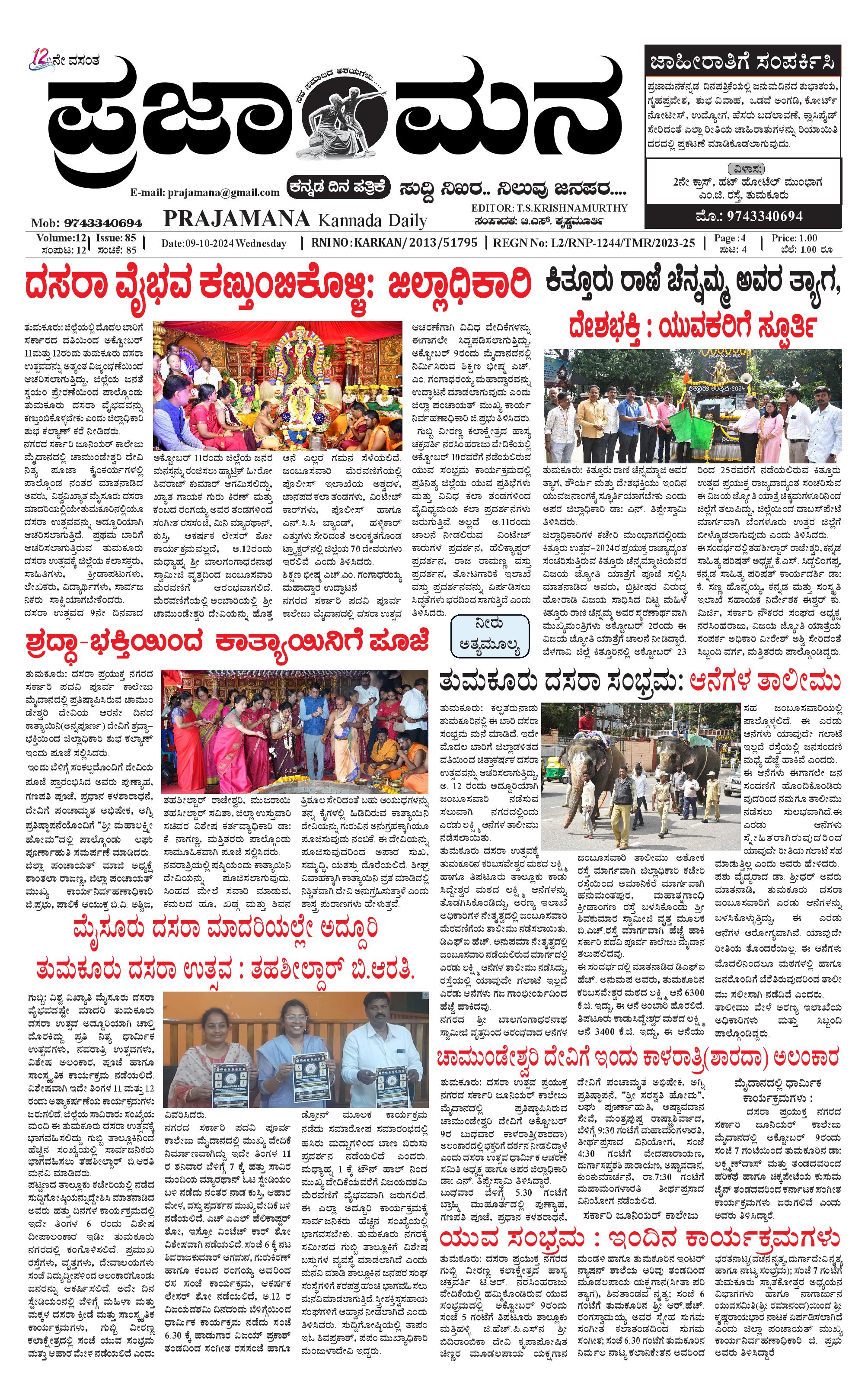 ಪ್ರಜಾಮನ 09 OCTOBER 2024 October 09, 2024 << First << 1 >> Last >> Page 1Page 2Page 3Page 4 × ಪ್ರಜಾಮನ 09 OCTOBER 2024 PRAJAMANA-page-001PRAJAMANA-page-002PRAJAMANA-page-003PRAJAMANA-page-004 << First << 1 >> Last >> PRAJAMANA-page-001PRAJAMANA-page-002PRAJAMANA-page-003PRAJAMANA-page-004 PRAJAMANA-page-001