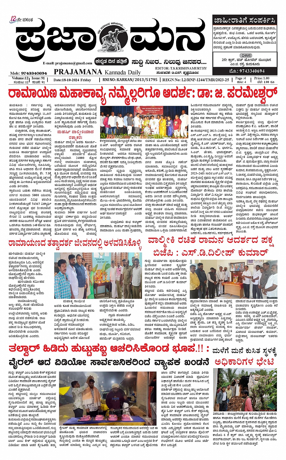 ಪ್ರಜಾಮನ 18 OCTOBER 2024 October 18, 2024 << First << 1 >> Last >> Page 1Page 2Page 3Page 4 × ಪ್ರಜಾಮನ 18 OCTOBER 2024 PRAJAMANA-page-001PRAJAMANA-page-002PRAJAMANA-page-003PRAJAMANA-page-004 << First << 1 >> Last >> PRAJAMANA-page-001PRAJAMANA-page-002PRAJAMANA-page-003PRAJAMANA-page-004 PRAJAMANA-page-001