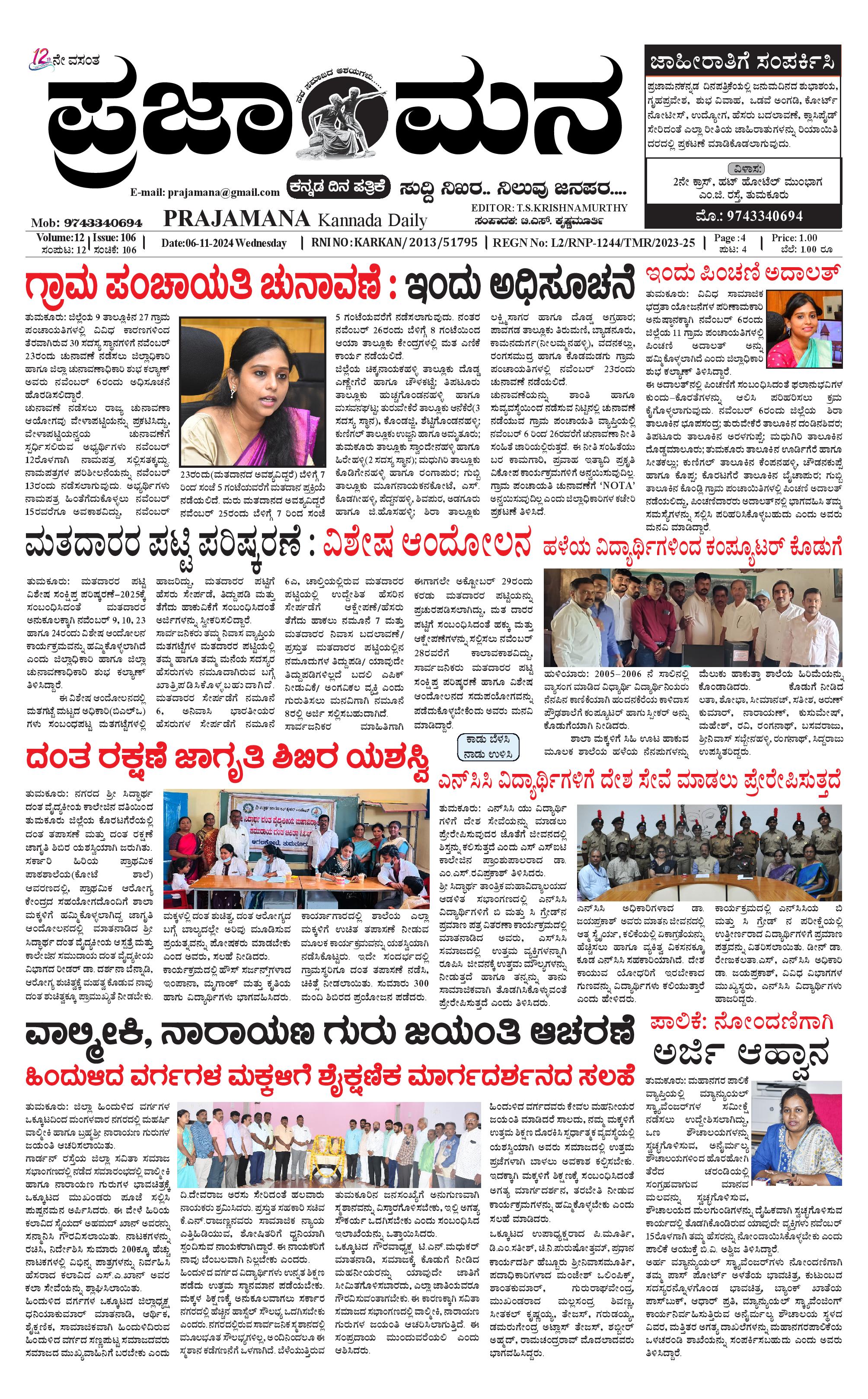 ಪ್ರಜಾಮನ 6 NOVEMBER 2024 November 06, 2024 << First << 1 >> Last >> Page 1Page 2Page 3Page 4 × ಪ್ರಜಾಮನ 6 NOVEMBER 2024 PRAJAMANA 1-page-001PRAJAMANA 1-page-002PRAJAMANA 1-page-003PRAJAMANA 1-page-004 << First << 1 >> Last >> PRAJAMANA 1-page-001PRAJAMANA 1-page-002PRAJAMANA 1-page-003PRAJAMANA 1-page-004 PRAJAMANA 1-page-001