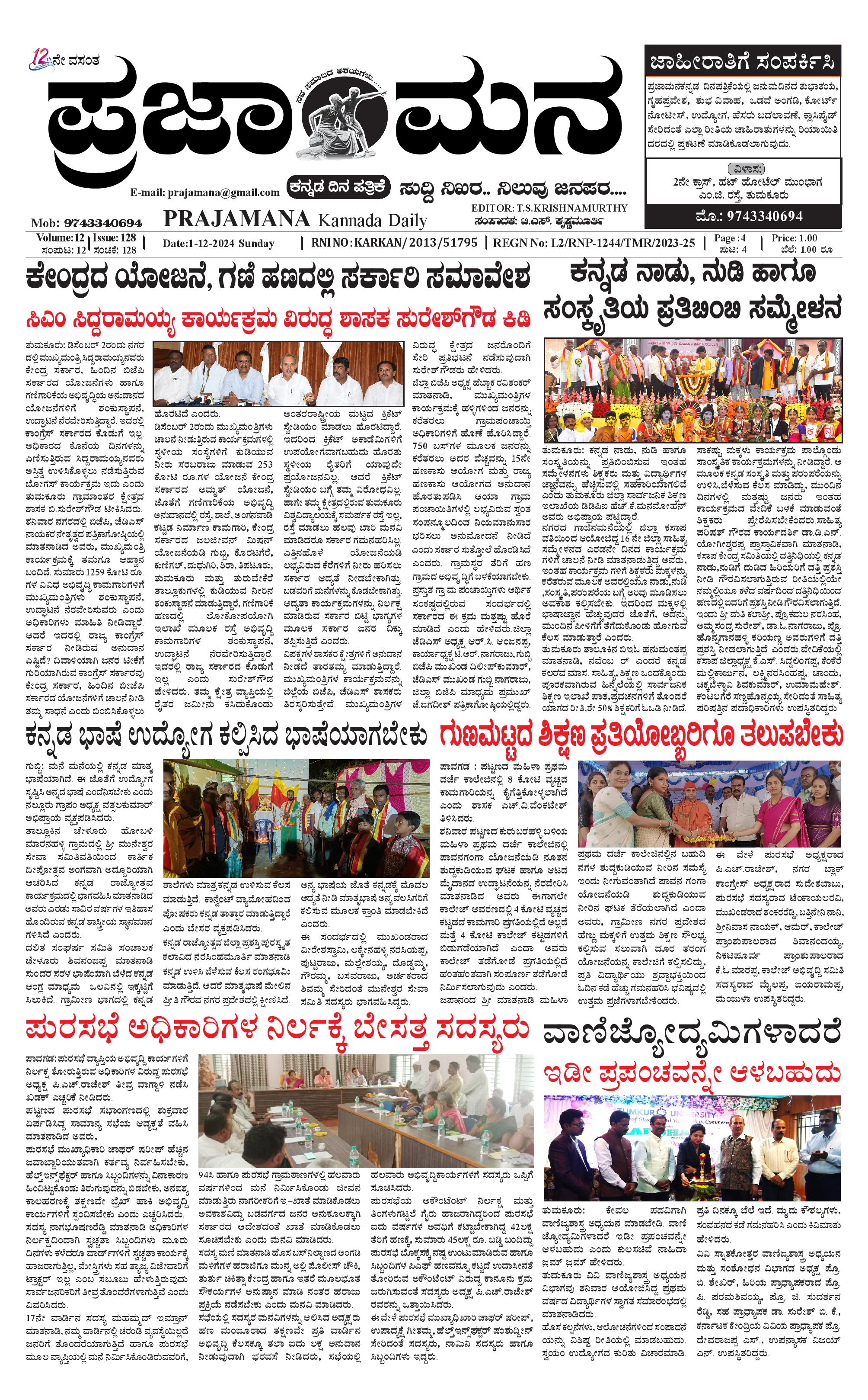 ಪ್ರಜಾಮನ 1 DECEMBER 2024 December 01, 2024 << First << 1 >> Last >> Page 1Page 2Page 3Page 4 × ಪ್ರಜಾಮನ 1 DECEMBER 2024 PRAJAMANA-page-001PRAJAMANA-page-002PRAJAMANA-page-003PRAJAMANA-page-004 << First << 1 >> Last >> PRAJAMANA-page-001PRAJAMANA-page-002PRAJAMANA-page-003PRAJAMANA-page-004 PRAJAMANA-page-001