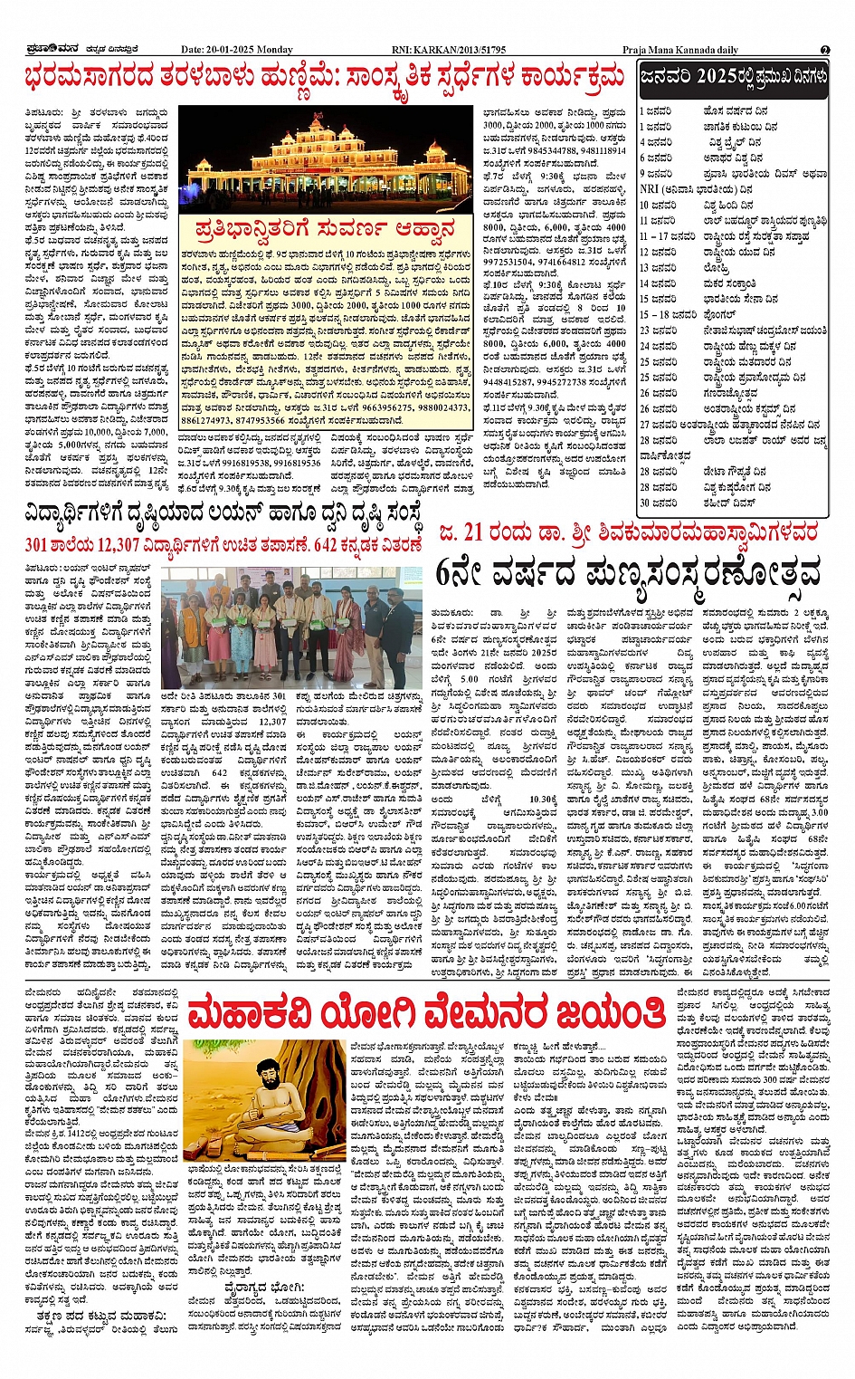 ಪ್ರಜಾಮನ 20 JANUARY 2025 Page: 2 January 20, 2025 << First << 2 >> Last >> Page 1Page 2Page 3 × ಪ್ರಜಾಮನ 20 JANUARY 2025 PRAJAMANA 1-page-001PRAJAMANA-page-002PRAJAMANA-page-003 << First << 2 >> Last >> PRAJAMANA 1-page-001PRAJAMANA-page-002PRAJAMANA-page-003 PRAJAMANA-page-002