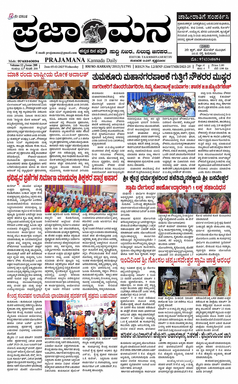 ಪ್ರಜಾಮನ 05 MARCH 2025 March 05, 2025 << First << 1 >> Last >> Page 1Page 2Page 3Page 4 × ಪ್ರಜಾಮನ 05 MARCH 2025 PRAJAMANA 1-page-001PRAJAMANA 1-page-002PRAJAMANA 1-page-003PRAJAMANA 1-page-004 << First << 1 >> Last >> PRAJAMANA 1-page-001PRAJAMANA 1-page-002PRAJAMANA 1-page-003PRAJAMANA 1-page-004 PRAJAMANA 1-page-001