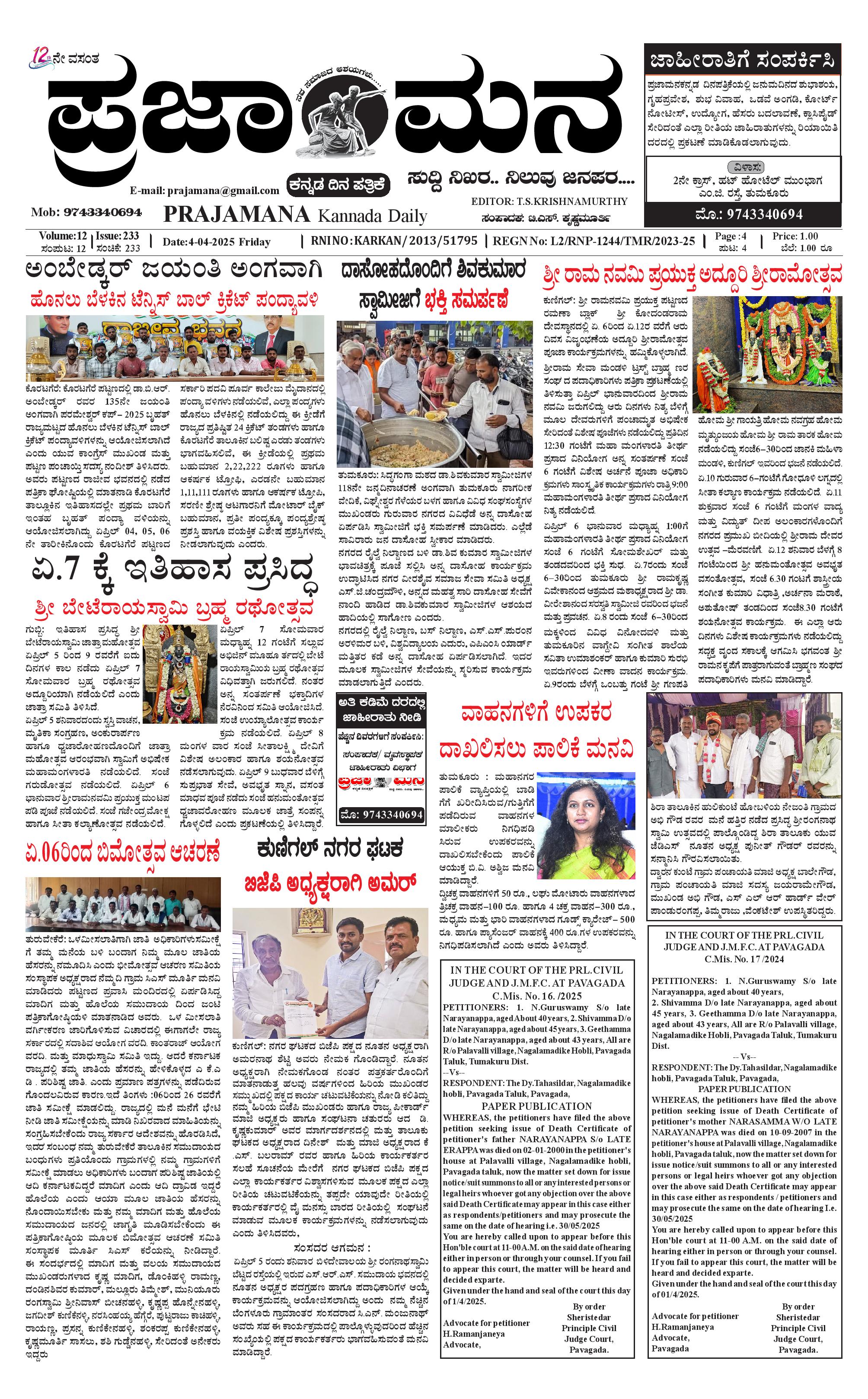 ಪ್ರಜಾಮನ 04 APRIL 2025