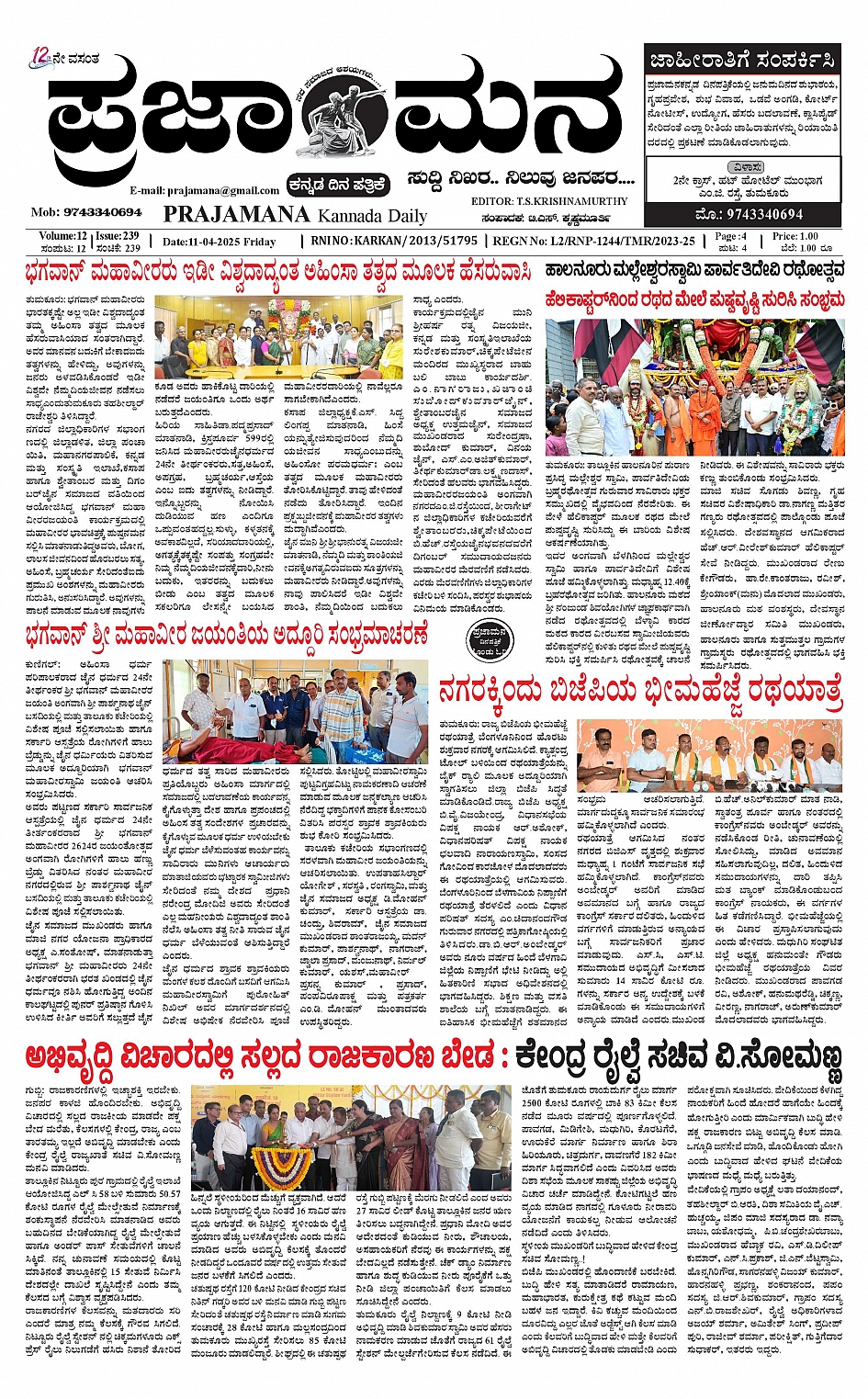 ಪ್ರಜಾಮನ 11 APRIL 2025 April 11, 2025 << First << 1 >> Last >> Page 1Page 2Page 3Page 4 × ಪ್ರಜಾಮನ 11 APRIL 2025 PRAJAMANA 11-page-001PRAJAMANA 11-page-002PRAJAMANA 11-page-003PRAJAMANA 11-page-004-1 << First << 1 >> Last >> PRAJAMANA 11-page-001PRAJAMANA 11-page-002PRAJAMANA 11-page-003PRAJAMANA 11-page-004-1 PRAJAMANA 11-page-001