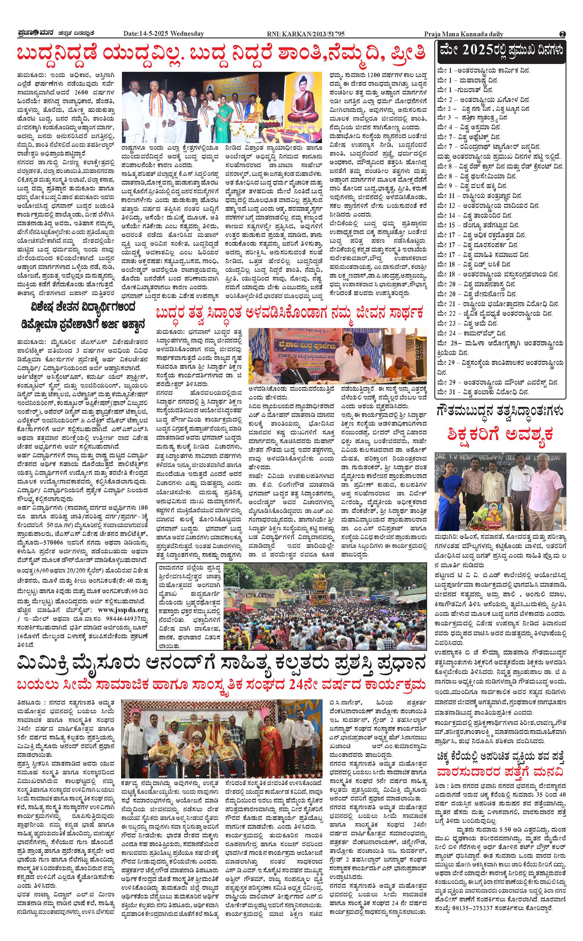 ಪ್ರಜಾಮನ 14 MAY 2025 Page: 2 May 14, 2025 << First << 2 >> Last >> Page 1Page 2Page 3Page 4 × ಪ್ರಜಾಮನ 14 MAY 2025 PRAJAMANA.11-page-001PRAJAMANA-page-002PRAJAMANA-page-003PRAJAMANA.11-page-004 << First << 2 >> Last >> PRAJAMANA.11-page-001PRAJAMANA-page-002PRAJAMANA-page-003PRAJAMANA.11-page-004 PRAJAMANA-page-002
