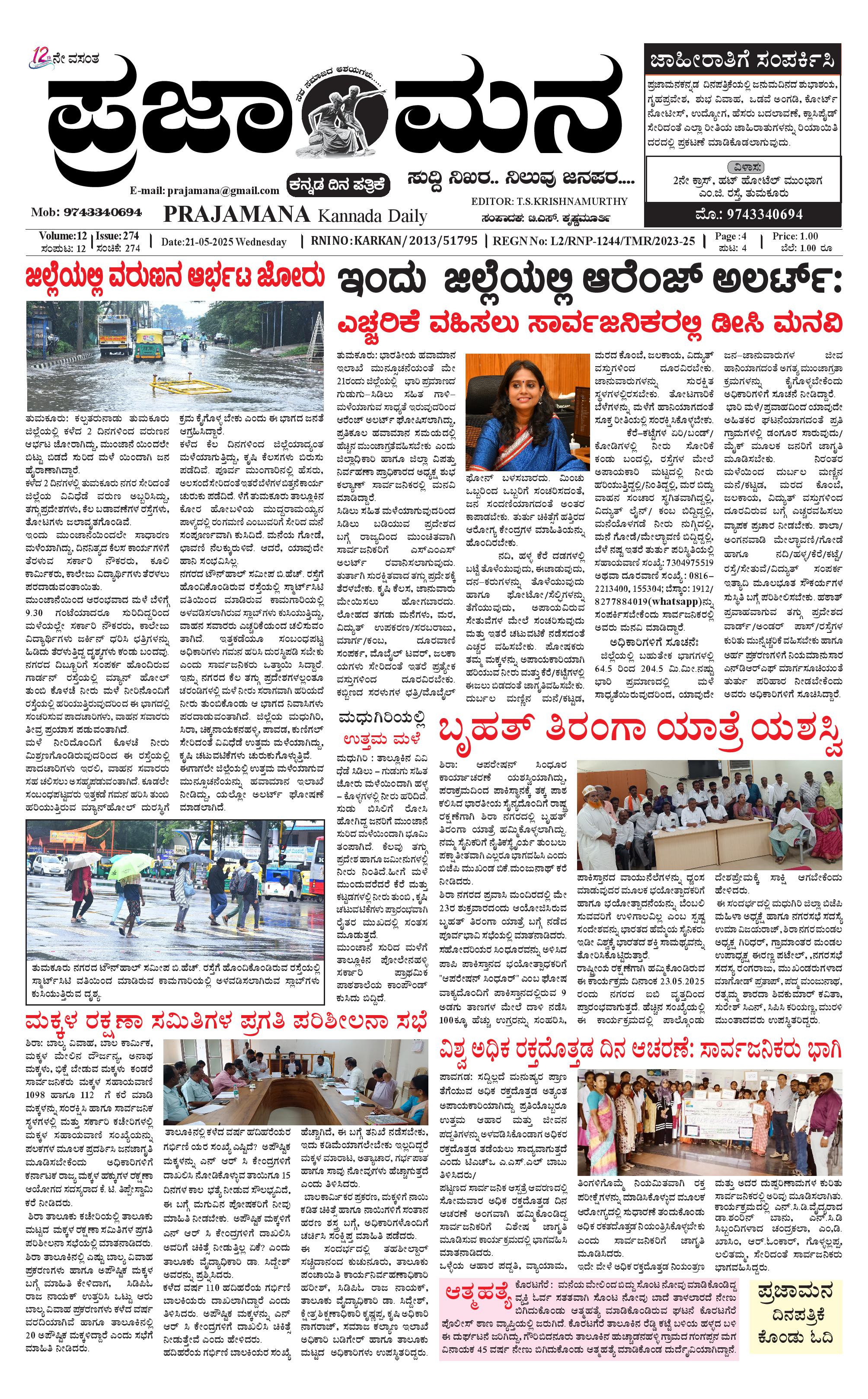 ಪ್ರಜಾಮನ 21 MAY 2025 May 21, 2025 << First << 1 >> Last >> Page 1Page 2Page 3Page 4 × ಪ್ರಜಾಮನ 21 MAY 2025 PRAJAMANA-page-001PRAJAMANA.11-page-002PRAJAMANA.11-page-003PRAJAMANA-page-004 << First << 1 >> Last >> PRAJAMANA-page-001PRAJAMANA.11-page-002PRAJAMANA.11-page-003PRAJAMANA-page-004 PRAJAMANA-page-001