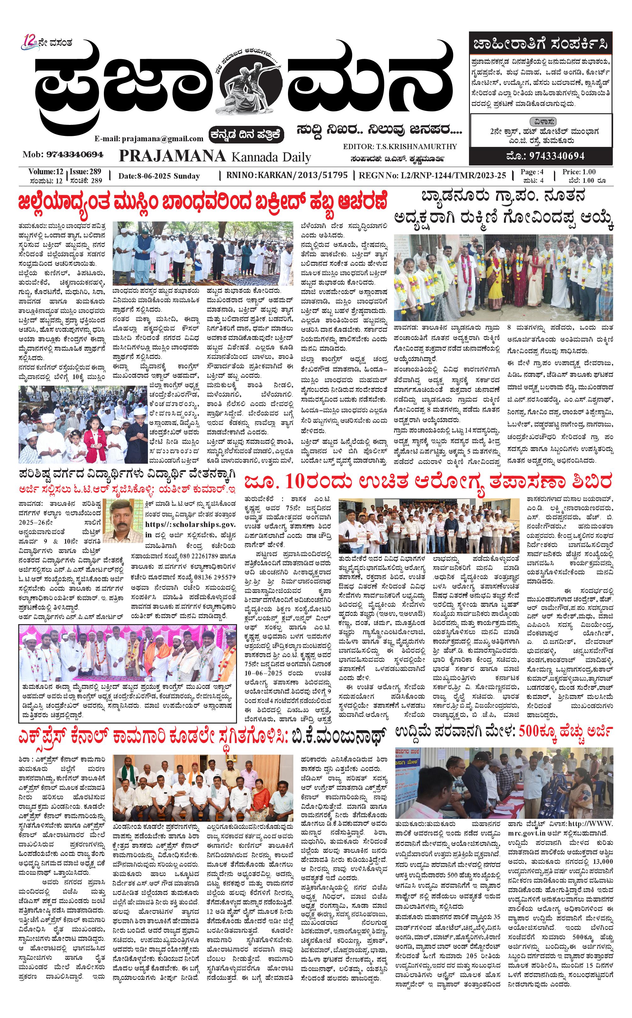 ಪ್ರಜಾಮನ 8 JUNE 2025 June 08, 2025 << First << 1 >> Last >> Page 1Page 2Page 3Page 4 × ಪ್ರಜಾಮನ 8 JUNE 2025 PRAJAMANA.11-page-001PRAJAMANA.11-page-002PRAJAMANA.11-page-003PRAJAMANA.11-page-004 << First << 1 >> Last >> PRAJAMANA.11-page-001PRAJAMANA.11-page-002PRAJAMANA.11-page-003PRAJAMANA.11-page-004 PRAJAMANA.11-page-001