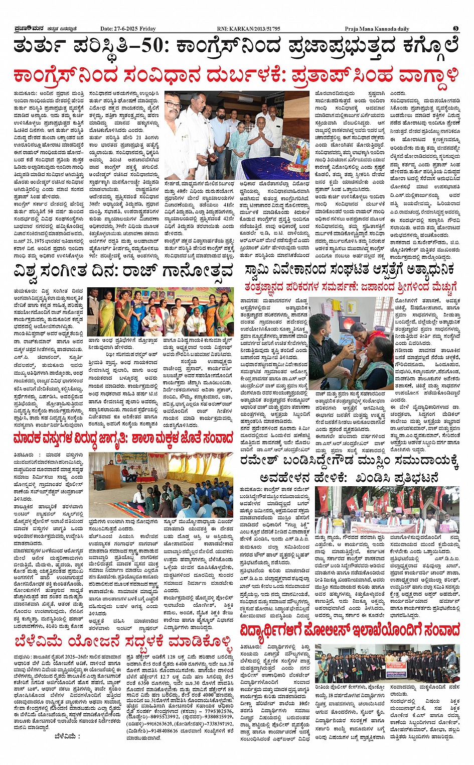 ಪ್ರಜಾಮನ 27 JUNE 2025 Page: 3 June 27, 2025 << First << 3 >> Last >> Page 1Page 2Page 3Page 4 × ಪ್ರಜಾಮನ 27 JUNE 2025 PRAJAMANA-page-001PRAJAMANA.11-page-002PRAJAMANA.11-page-003PRAJAMANA-page-004 << First << 3 >> Last >> PRAJAMANA-page-001PRAJAMANA.11-page-002PRAJAMANA.11-page-003PRAJAMANA-page-004 PRAJAMANA.11-page-003