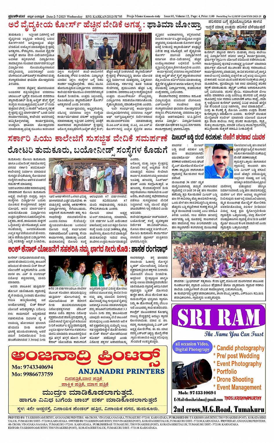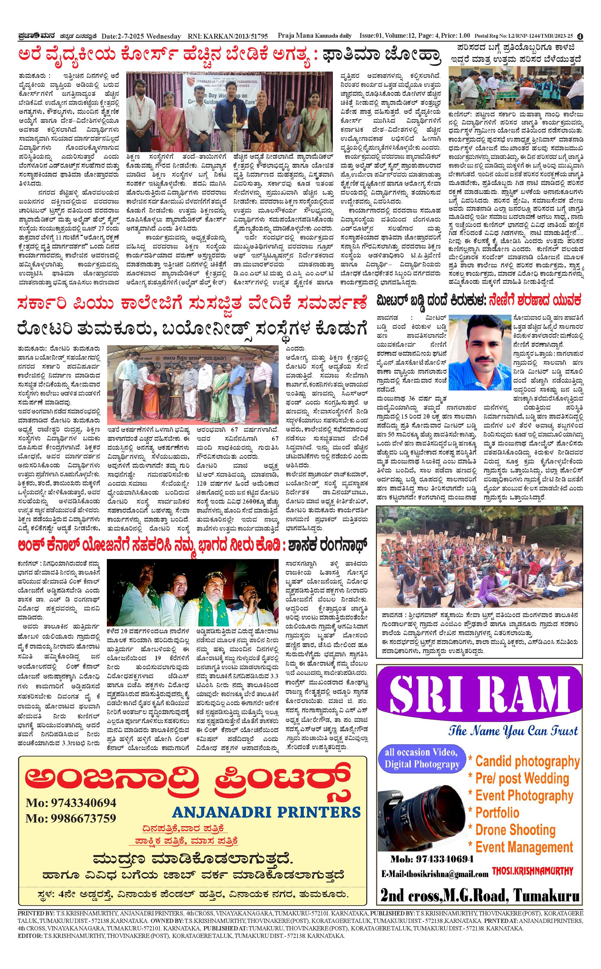ಪ್ರಜಾಮನ 02 JULY 2025 Page: 4 July 02, 2025 << First << 4 >> Last >> Page 1Page 2Page 3Page 4 × ಪ್ರಜಾಮನ 02 JULY 2025 PRAJAMANA-page-001PRAJAMANA-page-002PRAJAMANA-page-003PRAJAMANA-page-004 << First << 4 >> Last >> PRAJAMANA-page-001PRAJAMANA-page-002PRAJAMANA-page-003PRAJAMANA-page-004 PRAJAMANA-page-004