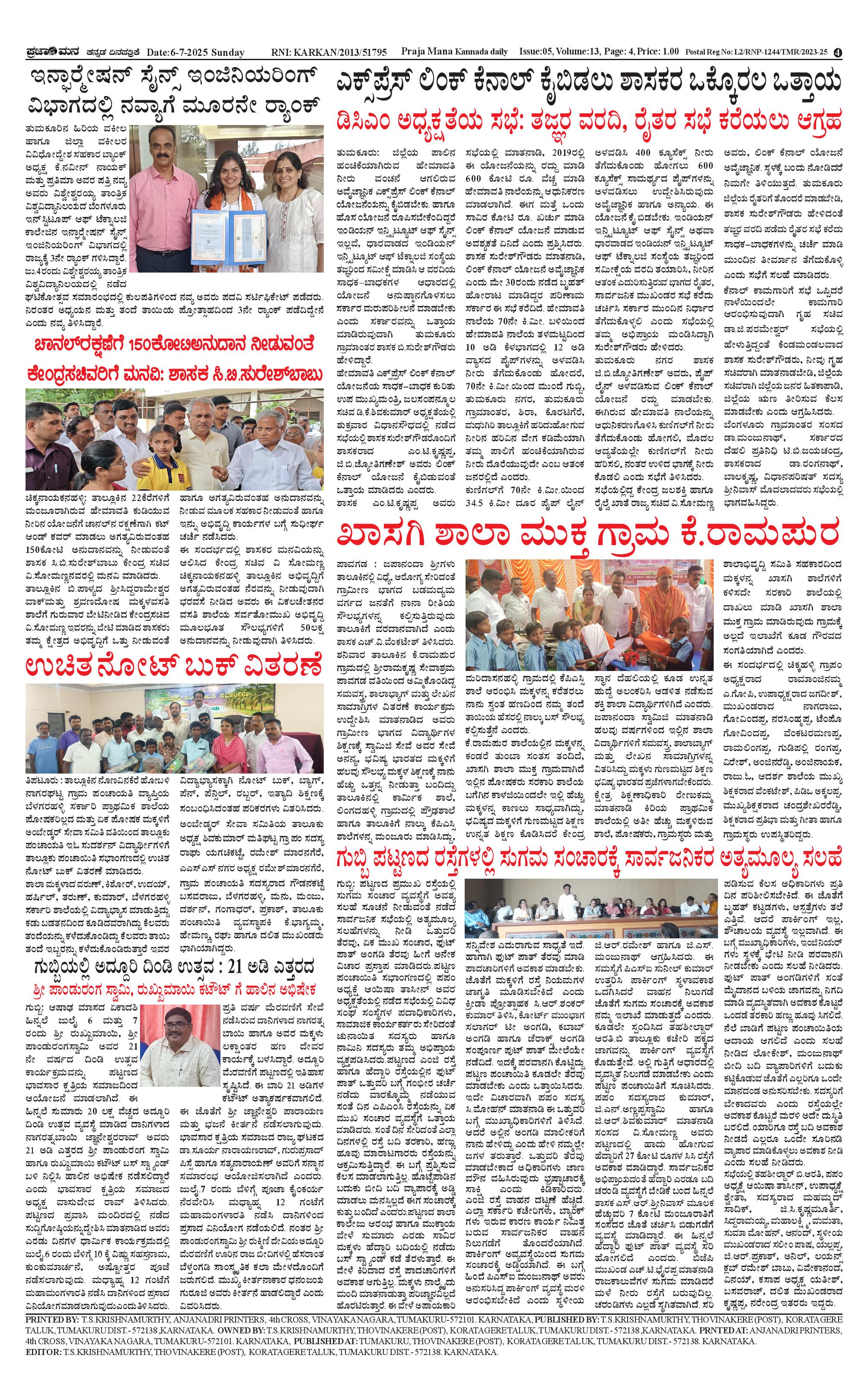 ಪ್ರಜಾಮನ 06 JULY 2025 Page: 4 July 06, 2025 << First << 4 >> Last >> Page 1Page 2Page 3Page 4 × ಪ್ರಜಾಮನ 06 JULY 2025 PRAJAMANA-page-001PRAJAMANA-page-002PRAJAMANA-page-003PRAJAMANA-page-004 << First << 4 >> Last >> PRAJAMANA-page-001PRAJAMANA-page-002PRAJAMANA-page-003PRAJAMANA-page-004 PRAJAMANA-page-004
