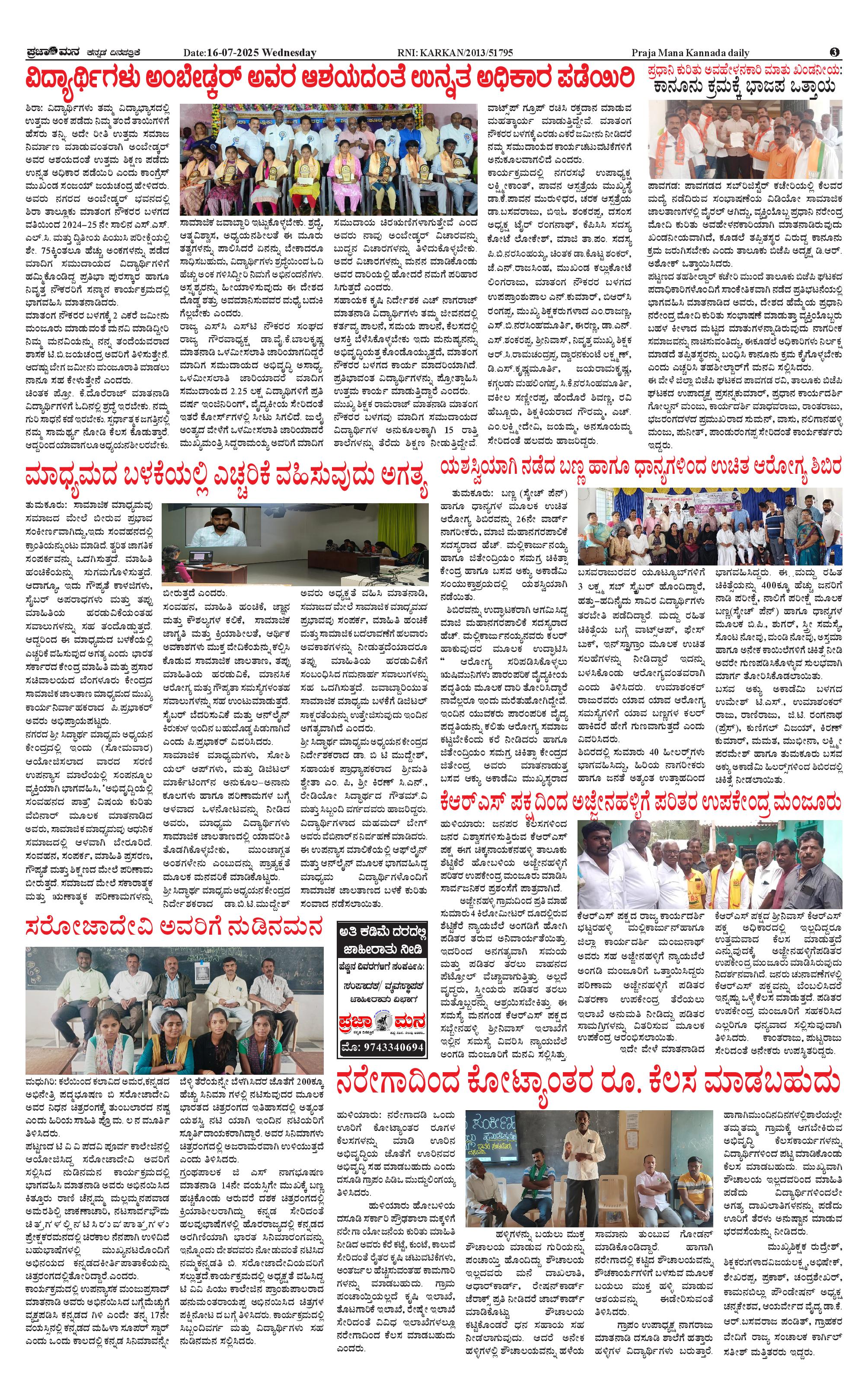 ಪ್ರಜಾಮನ 16 JULY 2025 Page: 3 July 16, 2025 << First << 3 >> Last >> Page 1Page 2Page 3Page 4 × ಪ್ರಜಾಮನ 16 JULY 2025 PRAJAMANA-page-001PRAJAMANA-page-002PRAJAMANA-page-003PRAJAMANA-page-004 << First << 3 >> Last >> PRAJAMANA-page-001PRAJAMANA-page-002PRAJAMANA-page-003PRAJAMANA-page-004 PRAJAMANA-page-003