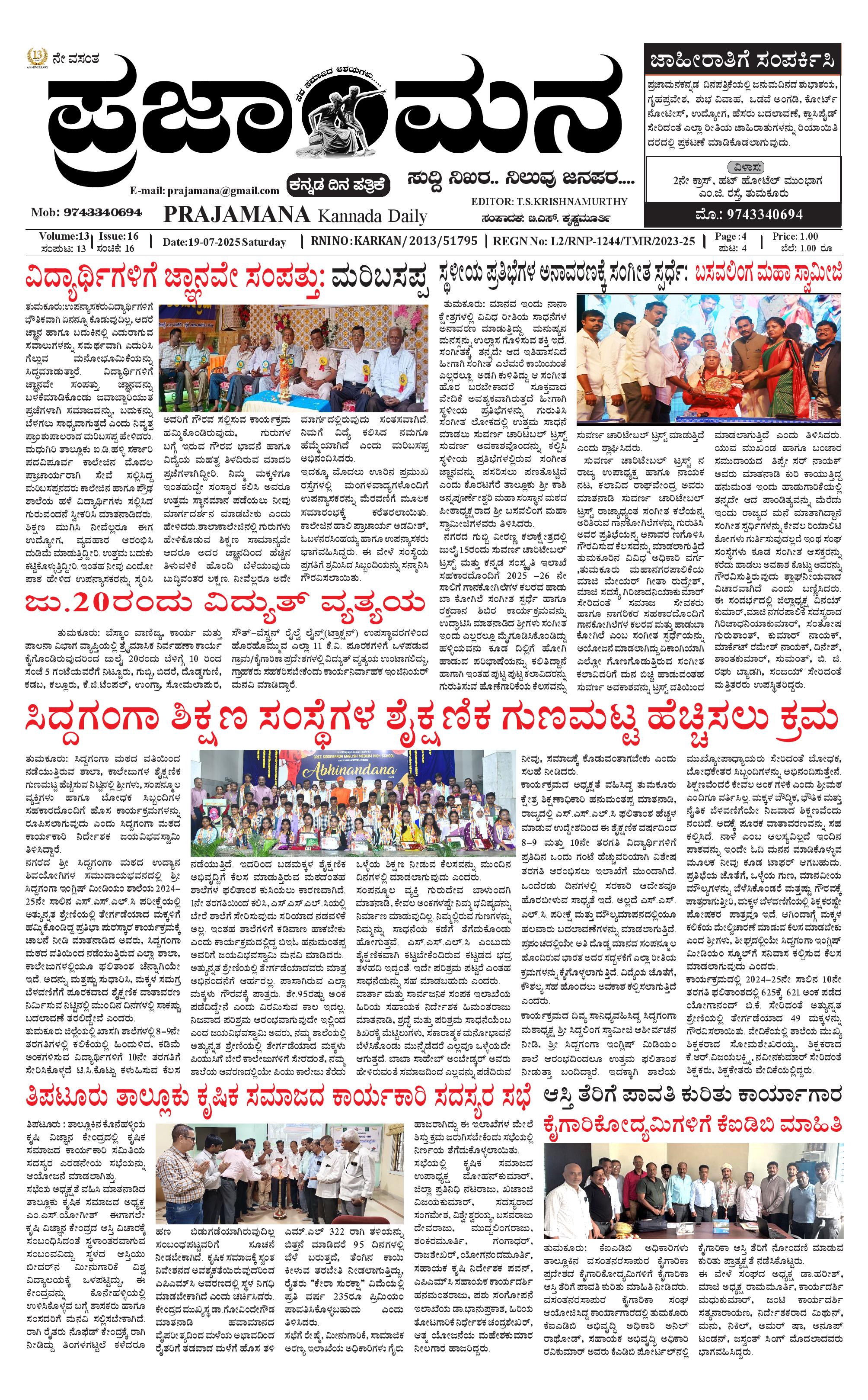 ಪ್ರಜಾಮನ 19 JULY 2025