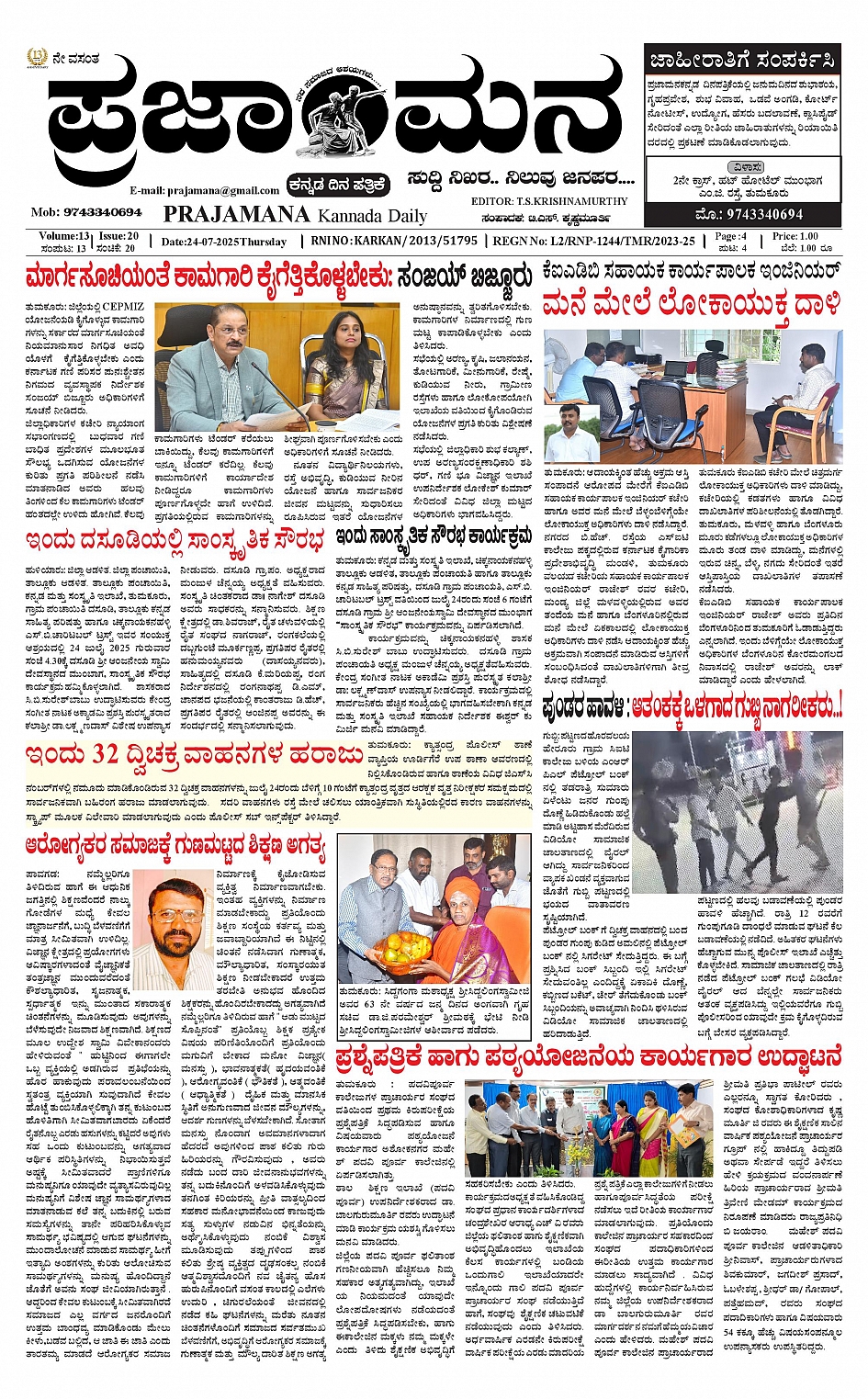 ಪ್ರಜಾಮನ 24 JULY 2025 July 24, 2025 << First << 1 >> Last >> Page 1Page 2Page 3Page 4 × ಪ್ರಜಾಮನ 24 JULY 2025 PRAJAMANA-page-001PRAJAMANA-page-002PRAJAMANA-page-003PRAJAMANA-page-004 << First << 1 >> Last >> PRAJAMANA-page-001PRAJAMANA-page-002PRAJAMANA-page-003PRAJAMANA-page-004 PRAJAMANA-page-001