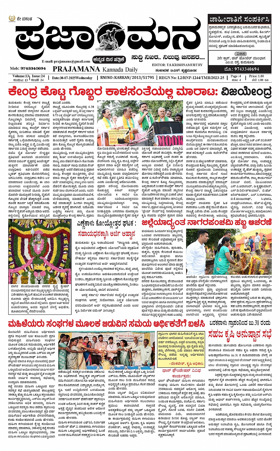 ಪ್ರಜಾಮನ 30 JULY 2025 July 30, 2025 << First << 1 >> Last >> Page 1Page 2Page 3Page 4 × ಪ್ರಜಾಮನ 30 JULY 2025 PRAJAMANA-page-001PRAJAMANA-page-002PRAJAMANA-page-003PRAJAMANA-page-004 << First << 1 >> Last >> PRAJAMANA-page-001PRAJAMANA-page-002PRAJAMANA-page-003PRAJAMANA-page-004 PRAJAMANA-page-001