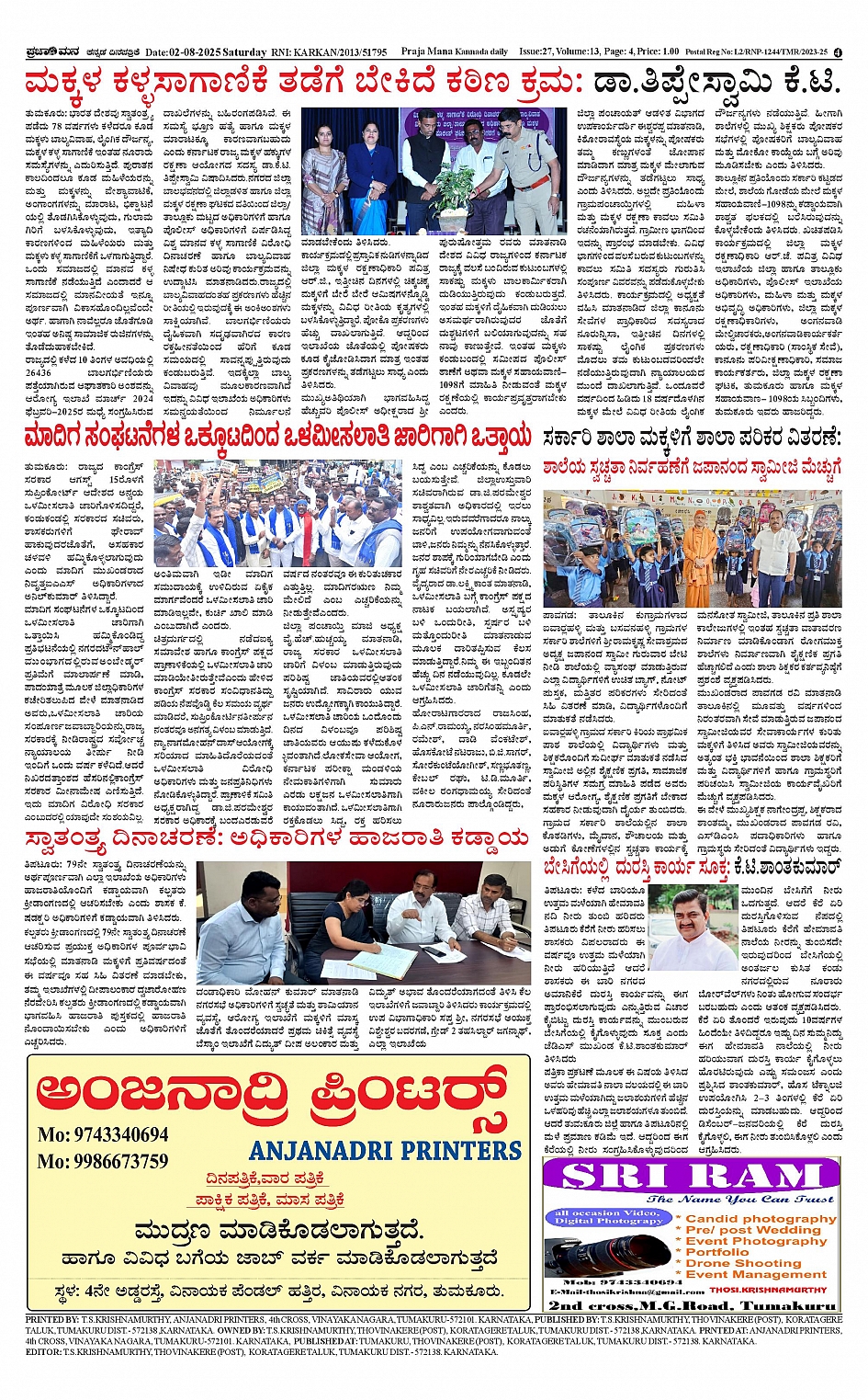 ಪ್ರಜಾಮನ 2 AUGUST 2025 Page: 4 August 02, 2025 << First << 4 >> Last >> Page 1Page 2Page 3Page 4 × ಪ್ರಜಾಮನ 2 AUGUST 2025 PRAJAMANA-page-001PRAJAMANA-page-002PRAJAMANA-page-003PRAJAMANA-page-004 << First << 4 >> Last >> PRAJAMANA-page-001PRAJAMANA-page-002PRAJAMANA-page-003PRAJAMANA-page-004 PRAJAMANA-page-004