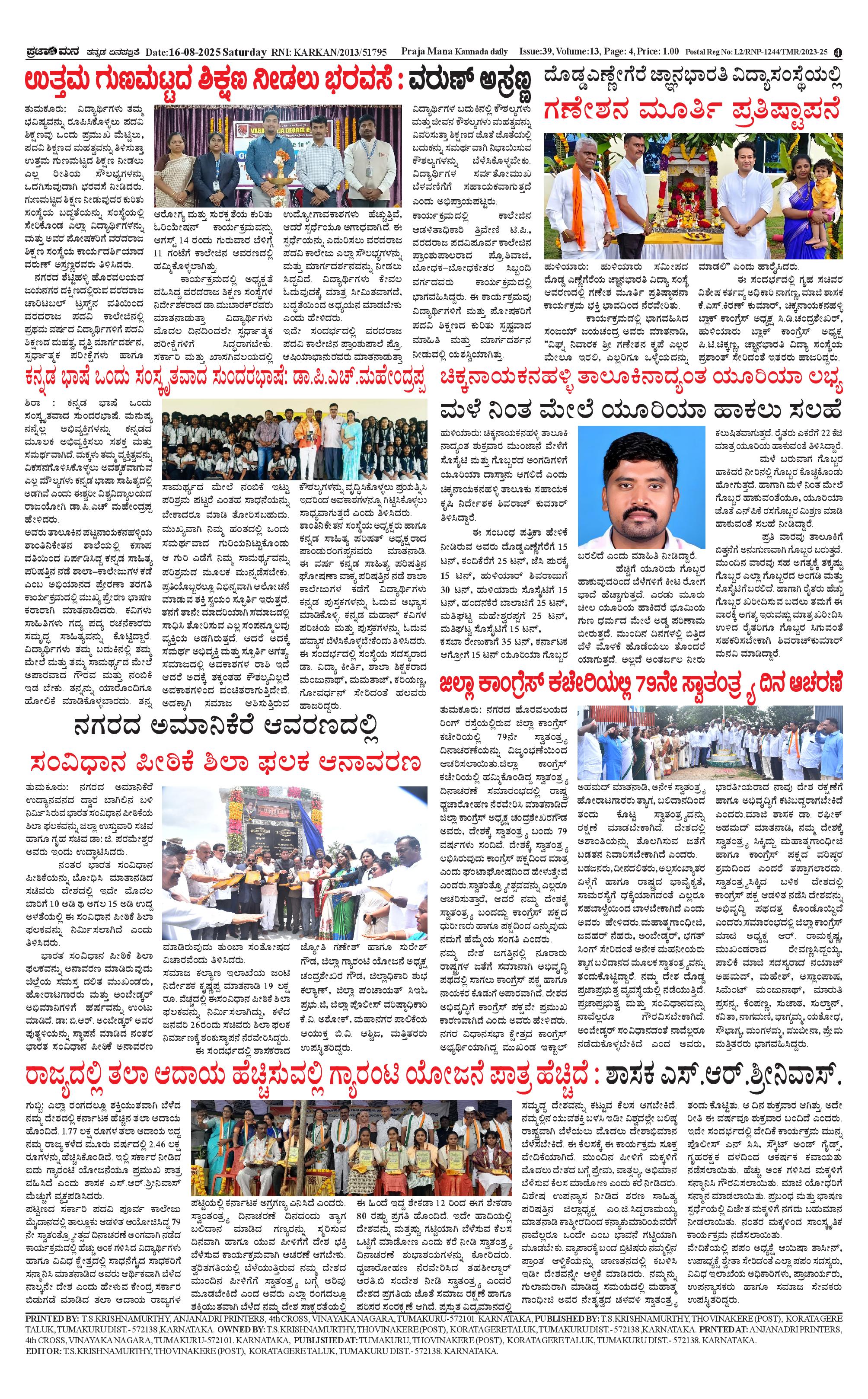 ಪ್ರಜಾಮನ 16 AUGUST 2025 Page: 4 August 16, 2025 << First << 4 >> Last >> Page 1Page 2Page 3Page 4 × ಪ್ರಜಾಮನ 16 AUGUST 2025 PRAJAMANA 11-page-001PRAJAMANA-page-002PRAJAMANA-page-003PRAJAMANA 11-page-004-1 << First << 4 >> Last >> PRAJAMANA 11-page-001PRAJAMANA-page-002PRAJAMANA-page-003PRAJAMANA 11-page-004-1 PRAJAMANA 11-page-004-1