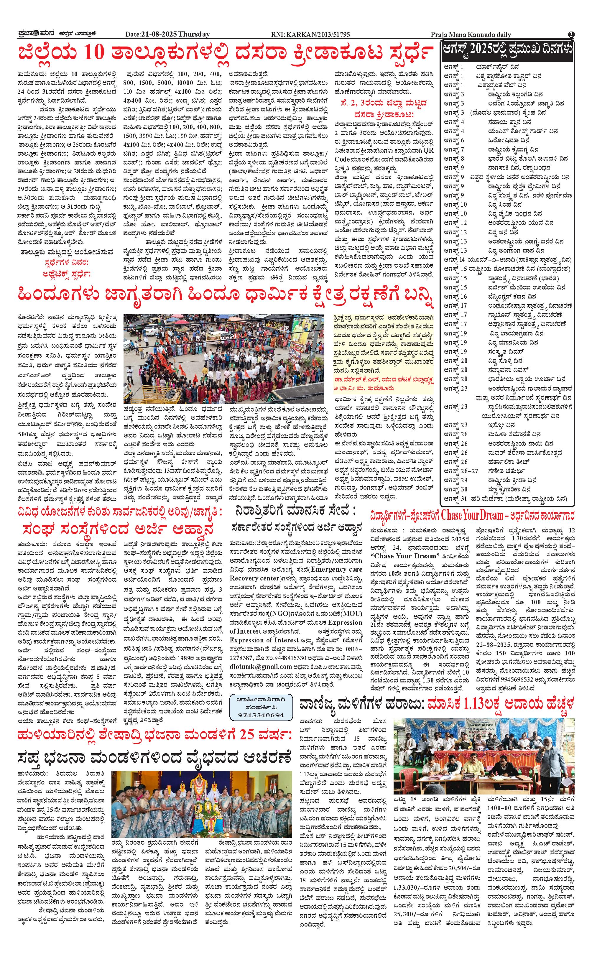 ಪ್ರಜಾಮನ 21 AUGUST 2025 Page: 2 August 21, 2025 << First << 2 >> Last >> Page 1Page 2Page 3Page 4 × ಪ್ರಜಾಮನ 21 AUGUST 2025 PRAJAMANA-page-001PRAJAMANA-page-002PRAJAMANA-page-003PRAJAMANA-page-004 << First << 2 >> Last >> PRAJAMANA-page-001PRAJAMANA-page-002PRAJAMANA-page-003PRAJAMANA-page-004 PRAJAMANA-page-002