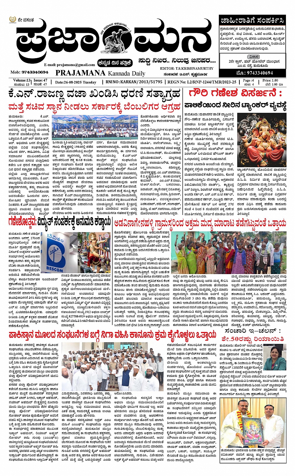 ಪ್ರಜಾಮನ 26 AUGUST 2025 August 26, 2025 << First << 1 >> Last >> Page 1Page 2Page 3Page 4 × ಪ್ರಜಾಮನ 26 AUGUST 2025 PRAJAMANA-page-001PRAJAMANA-page-002PRAJAMANA-page-003PRAJAMANA-page-004 << First << 1 >> Last >> PRAJAMANA-page-001PRAJAMANA-page-002PRAJAMANA-page-003PRAJAMANA-page-004 PRAJAMANA-page-001