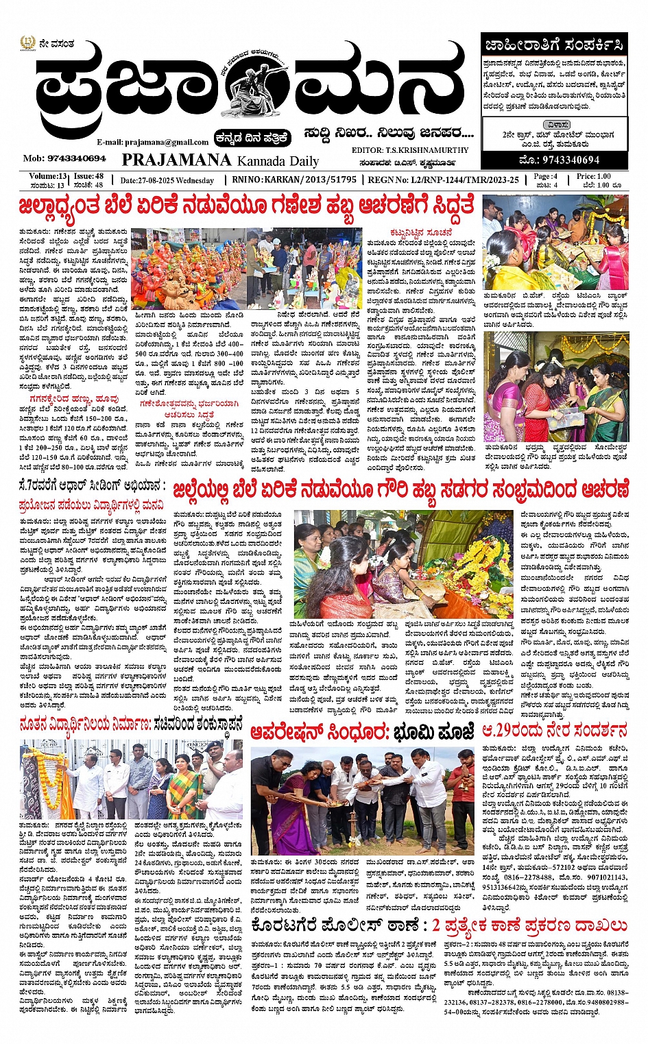 ಪ್ರಜಾಮನ 27 AUGUST 2025 August 27, 2025 << First << 1 >> Last >> Page 1Page 2Page 3Page 4 × ಪ್ರಜಾಮನ 27 AUGUST 2025 PRAJAMANA-page-001PRAJAMANA-page-002PRAJAMANA-page-003PRAJAMANA-page-004 << First << 1 >> Last >> PRAJAMANA-page-001PRAJAMANA-page-002PRAJAMANA-page-003PRAJAMANA-page-004 PRAJAMANA-page-001