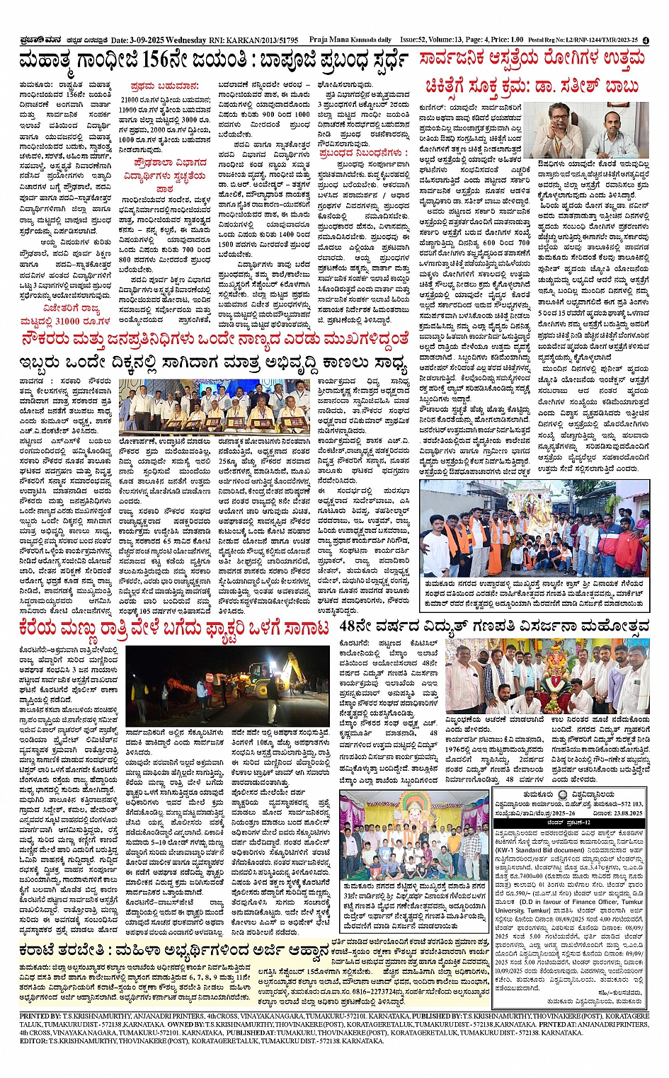 ಪ್ರಜಾಮನ 3 SEPTEMBER 2025 Page: 4 September 03, 2025 << First << 4 >> Last >> Page 1Page 2Page 3Page 4 × ಪ್ರಜಾಮನ 3 SEPTEMBER 2025 PRAJAMANA-page-001PRAJAMANA-page-002-1PRAJAMANA-page-003PRAJAMANA-page-004 << First << 4 >> Last >> PRAJAMANA-page-001PRAJAMANA-page-002-1PRAJAMANA-page-003PRAJAMANA-page-004 PRAJAMANA-page-004