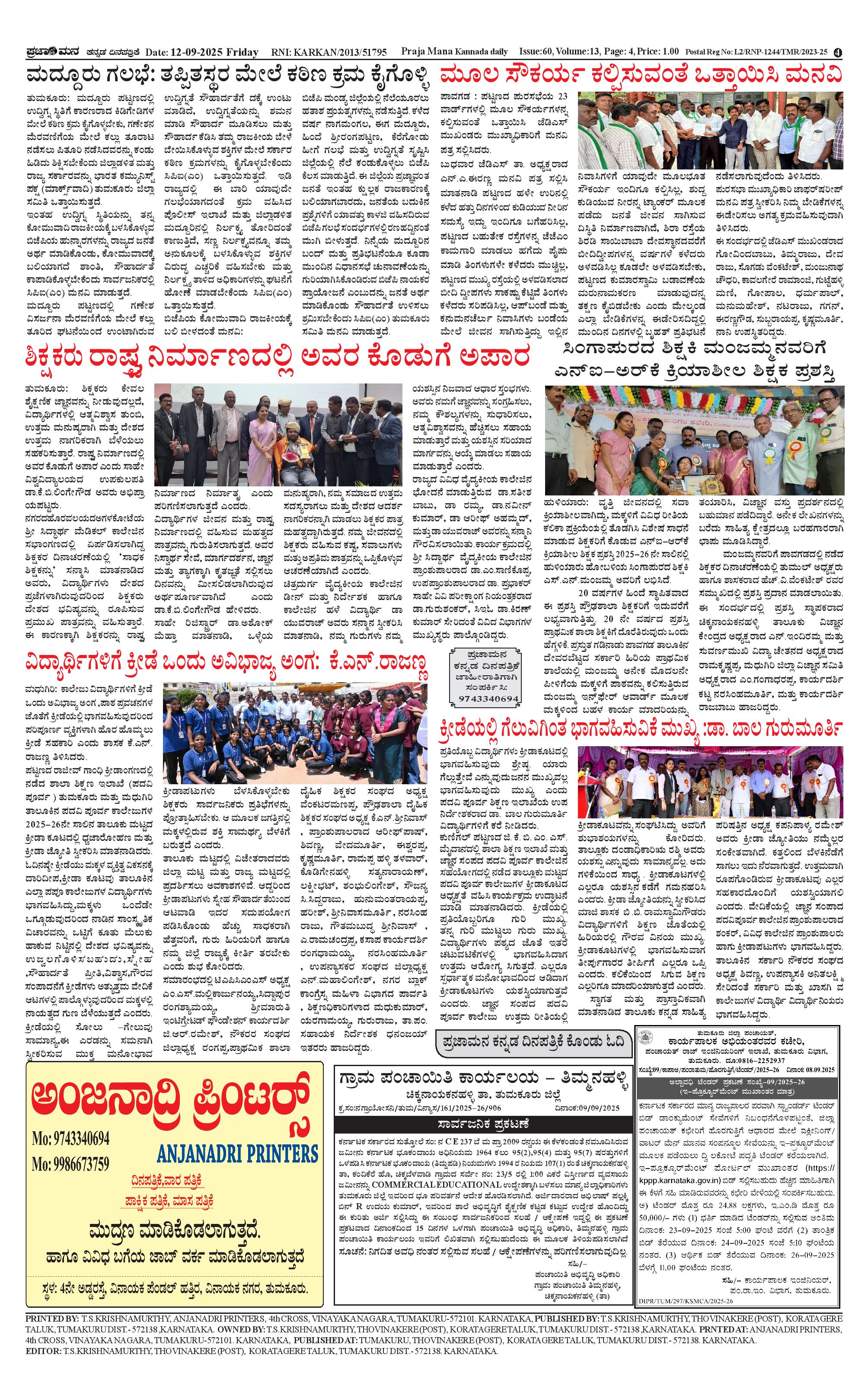 ಪ್ರಜಾಮನ 12 SEPTEMBER 2025 Page: 4 September 12, 2025 << First << 4 >> Last >> Page 1Page 2Page 3Page 4 × ಪ್ರಜಾಮನ 12 SEPTEMBER 2025 PRAJAMANA-page-001PRAJAMANA-page-002PRAJAMANA-page-003PRAJAMANA-page-004 << First << 4 >> Last >> PRAJAMANA-page-001PRAJAMANA-page-002PRAJAMANA-page-003PRAJAMANA-page-004 PRAJAMANA-page-004
