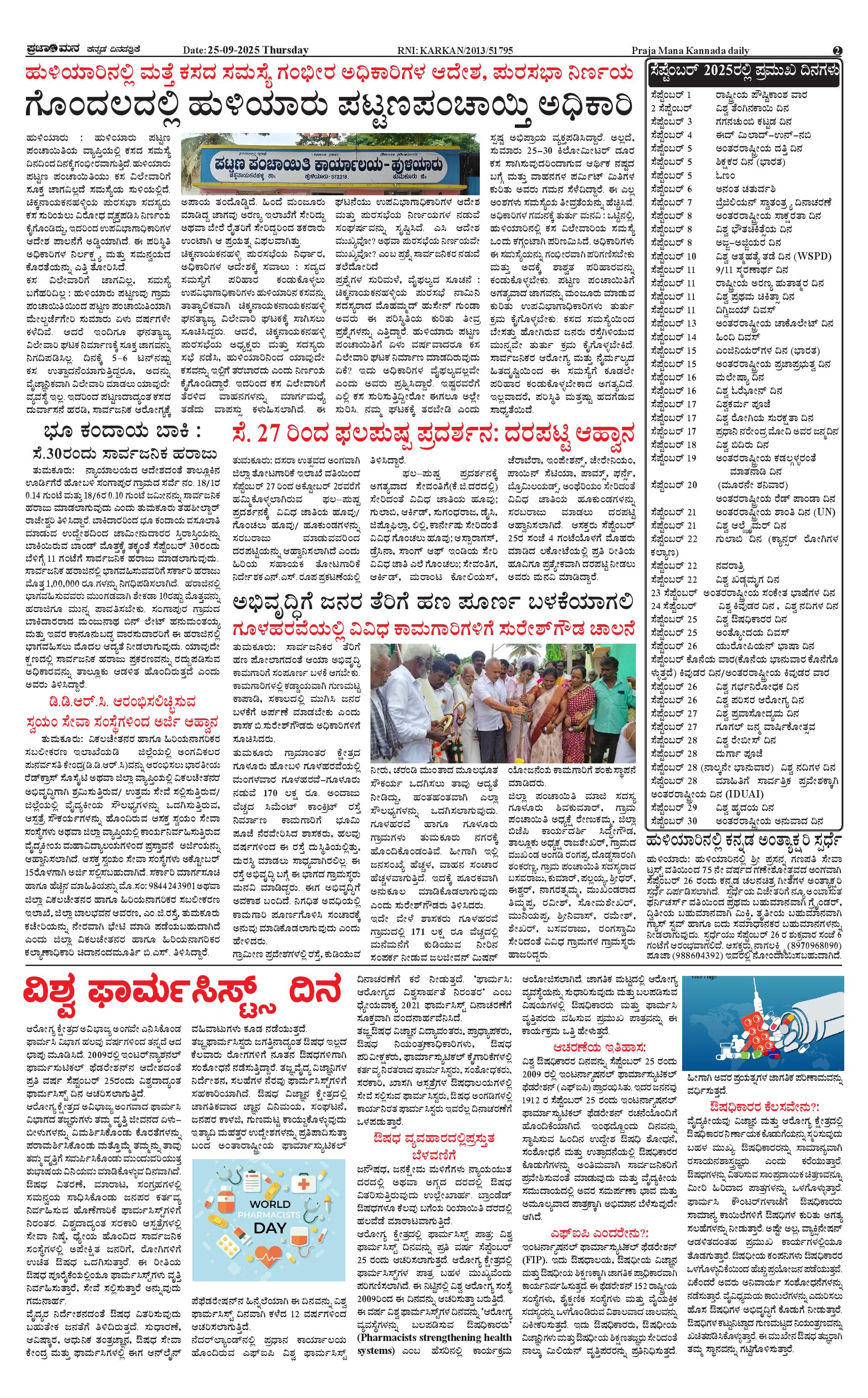ಪ್ರಜಾಮನ 25 SEPTEMBER 2025 Page: 2 September 25, 2025 << First << 2 >> Last >> Page 1Page 2Page 3Page 4 × ಪ್ರಜಾಮನ 25 SEPTEMBER 2025 PRAJAMANA-page-001PRAJAMANA-page-002PRAJAMANA-page-003PRAJAMANA-page-004 << First << 2 >> Last >> PRAJAMANA-page-001PRAJAMANA-page-002PRAJAMANA-page-003PRAJAMANA-page-004 PRAJAMANA-page-002