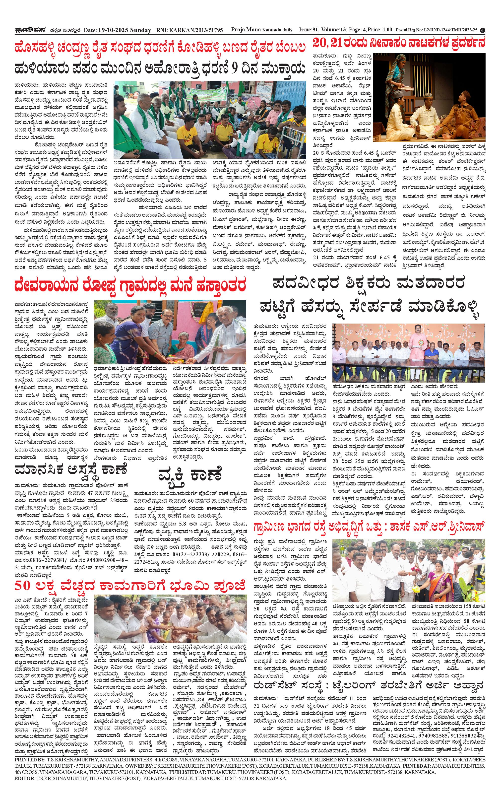 ಪ್ರಜಾಮನ 19 OCTOBER 2025 Page: 4 October 19, 2025 << First << 4 >> Last >> Page 1Page 2Page 3Page 4 × ಪ್ರಜಾಮನ 19 OCTOBER 2025 PRAJAMANA-page-001PRAJAMANA-page-002PRAJAMANA-page-003PRAJAMANA-page-004 << First << 4 >> Last >> PRAJAMANA-page-001PRAJAMANA-page-002PRAJAMANA-page-003PRAJAMANA-page-004 PRAJAMANA-page-004