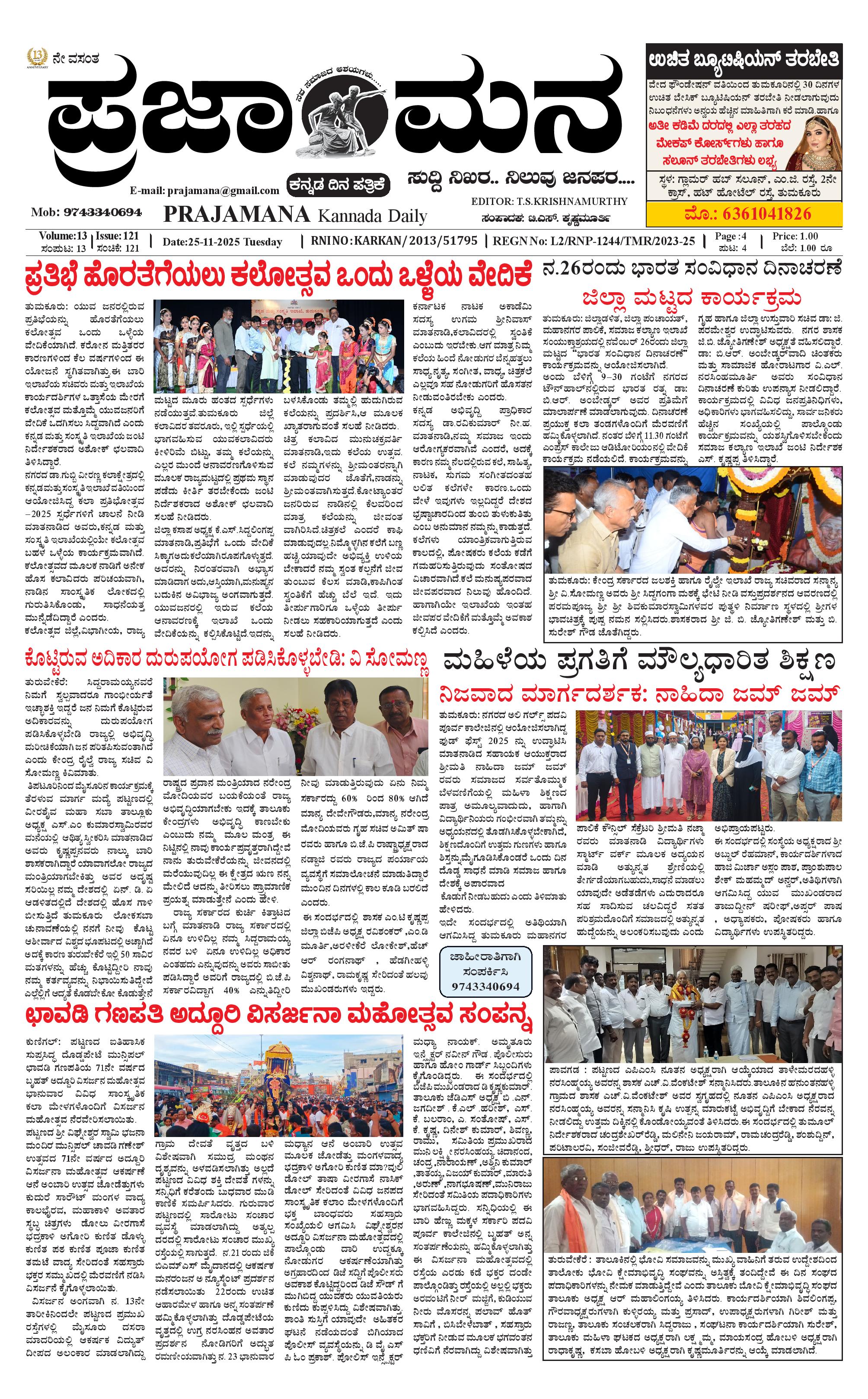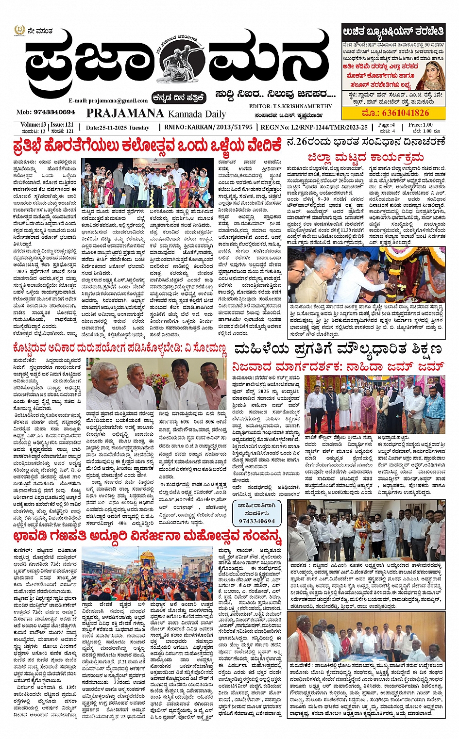 ಪ್ರಜಾಮನ 25 NOVEMBER 2025 November 25, 2025 << First << 1 >> Last >> Page 1Page 2Page 3Page 4 × ಪ್ರಜಾಮನ 25 NOVEMBER 2025 PRAJAMANA-page-001PRAJAMANA-page-002PRAJAMANA-page-003PRAJAMANA-page-004 << First << 1 >> Last >> PRAJAMANA-page-001PRAJAMANA-page-002PRAJAMANA-page-003PRAJAMANA-page-004 PRAJAMANA-page-001