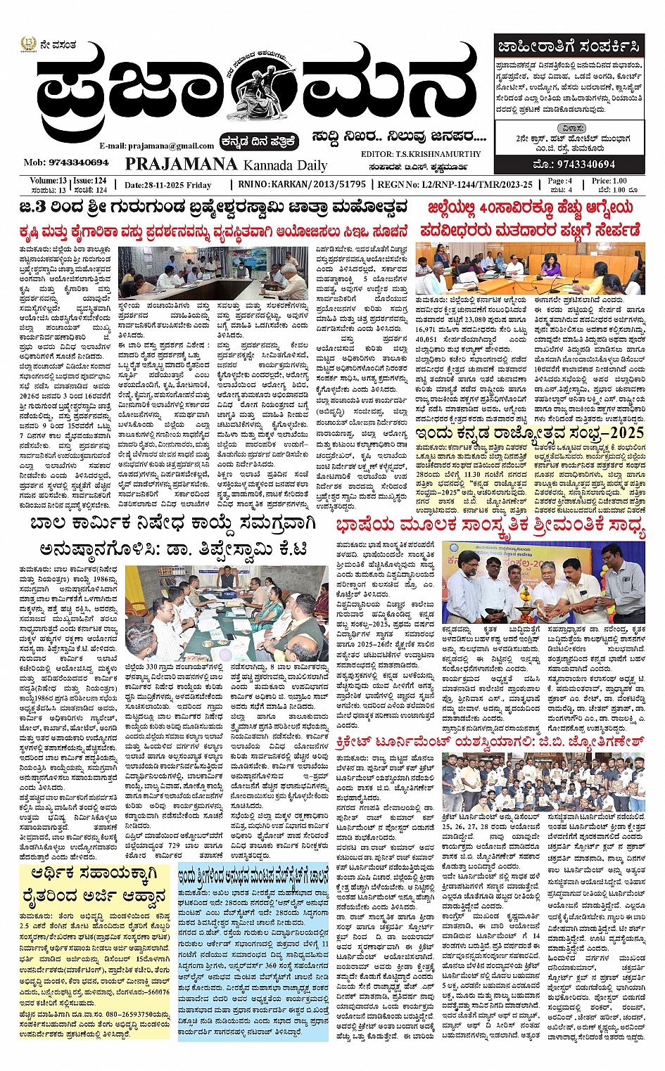 ಪ್ರಜಾಮನ 28 NOVEMBER 2025 November 28, 2025 << First << 1 >> Last >> Page 1Page 2Page 3Page 4 × ಪ್ರಜಾಮನ 28 NOVEMBER 2025 PRAJAMANA-page-001PRAJAMANA-page-002PRAJAMANA-page-003PRAJAMANA-page-004 << First << 1 >> Last >> PRAJAMANA-page-001PRAJAMANA-page-002PRAJAMANA-page-003PRAJAMANA-page-004 PRAJAMANA-page-001