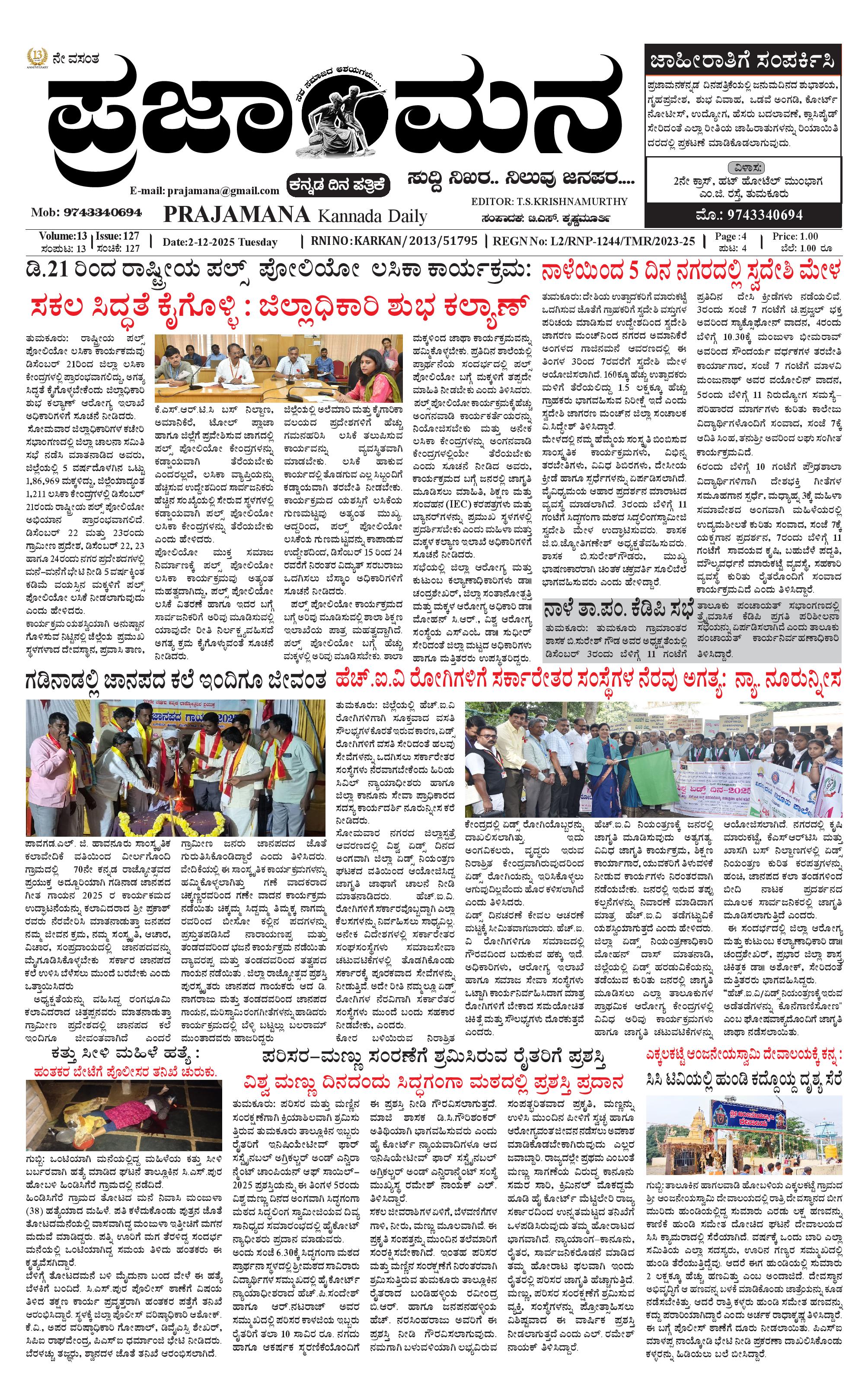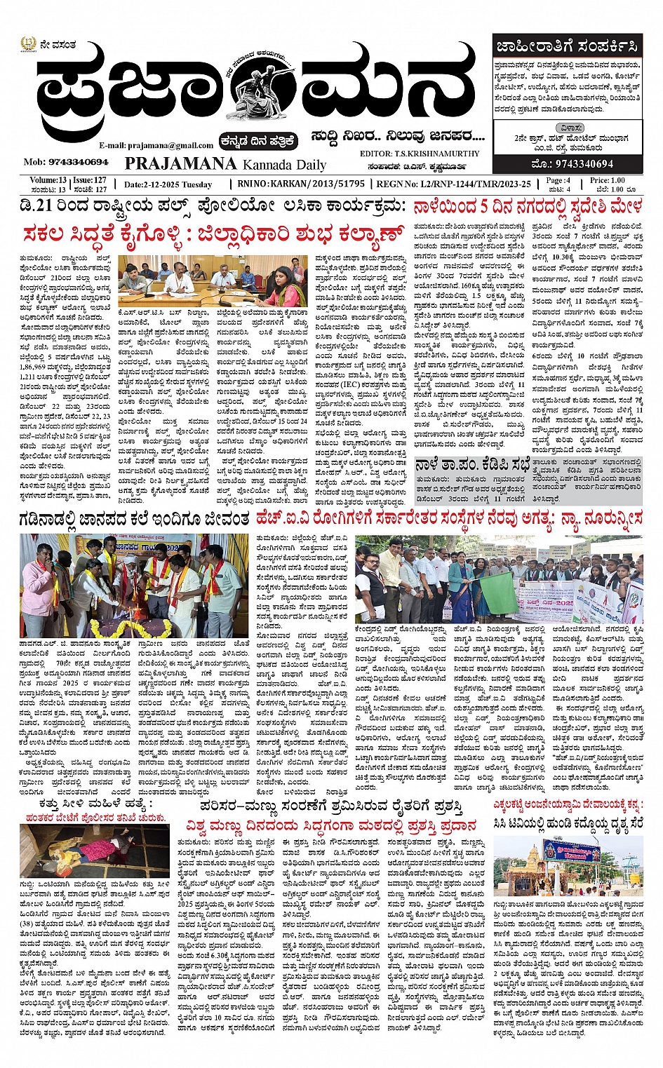 ಪ್ರಜಾಮನ 02 DECEMBER 2025 December 02, 2025 << First << 1 >> Last >> Page 1Page 2Page 3Page 4 × ಪ್ರಜಾಮನ 02 DECEMBER 2025 PRAJAMANA-page-001PRAJAMANA-page-002PRAJAMANA-page-003PRAJAMANA-page-004 << First << 1 >> Last >> PRAJAMANA-page-001PRAJAMANA-page-002PRAJAMANA-page-003PRAJAMANA-page-004 PRAJAMANA-page-001