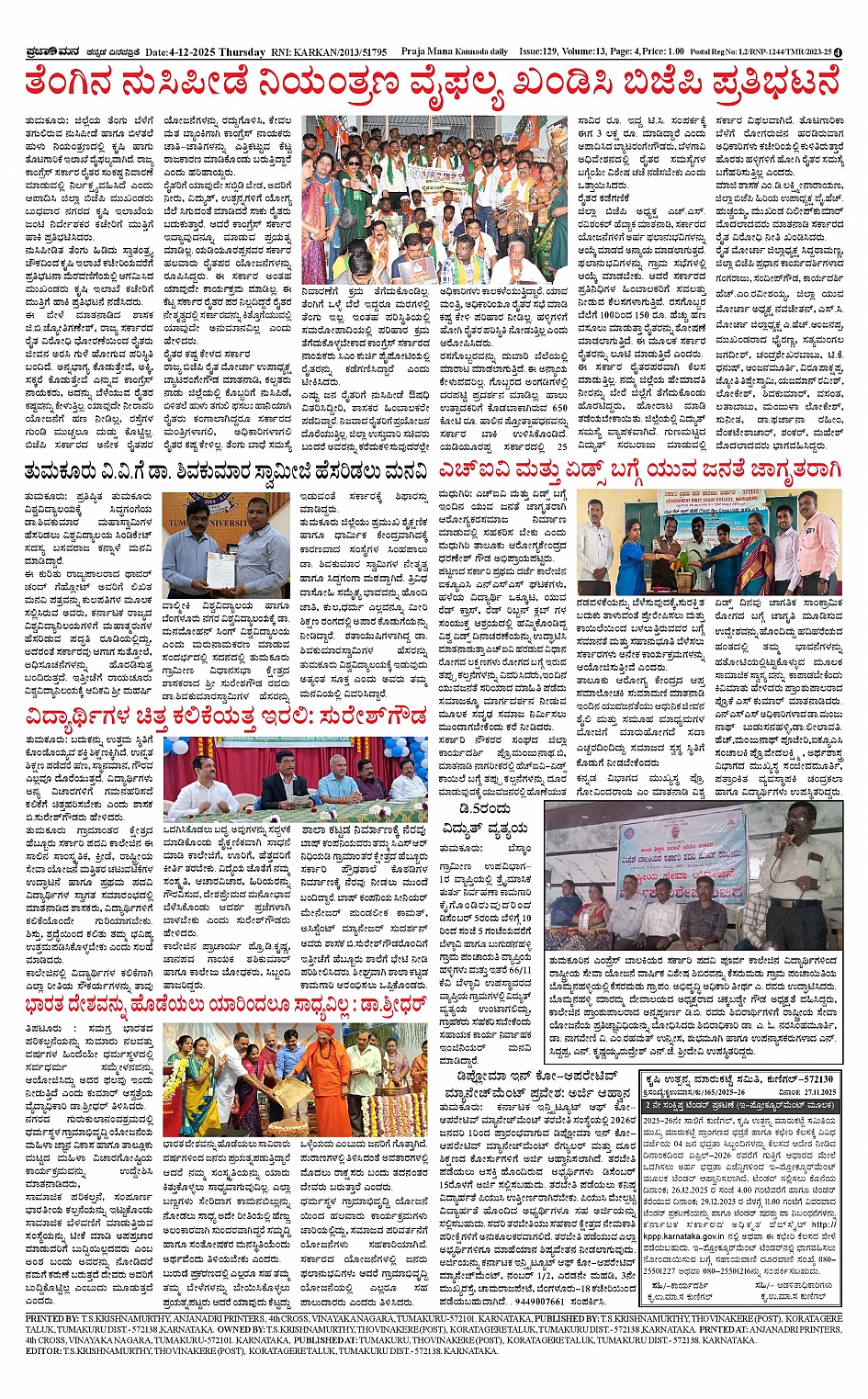 ಪ್ರಜಾಮನ 04 DECEMBER 2025 Page: 4 December 04, 2025 << First << 4 >> Last >> Page 1Page 2Page 3Page 4 × ಪ್ರಜಾಮನ 04 DECEMBER 2025 PRAJAMANA-page-001PRAJAMANA-page-002PRAJAMANA-page-003PRAJAMANA-page-004 << First << 4 >> Last >> PRAJAMANA-page-001PRAJAMANA-page-002PRAJAMANA-page-003PRAJAMANA-page-004 PRAJAMANA-page-004