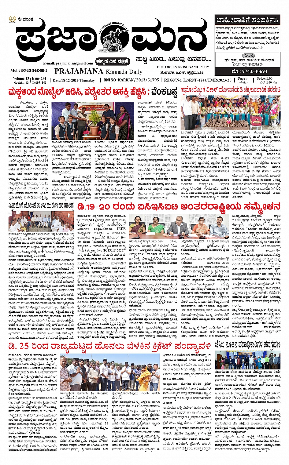 ಪ್ರಜಾಮನ 18 DECEMBER 2025 December 18, 2025 << First << 1 >> Last >> Page 1Page 2Page 3Page 4 × ಪ್ರಜಾಮನ 18 DECEMBER 2025 PRAJAMANA 7-page-001PRAJAMANA 7-page-002PRAJAMANA 7-page-003PRAJAMANA 7-page-004 << First << 1 >> Last >> PRAJAMANA 7-page-001PRAJAMANA 7-page-002PRAJAMANA 7-page-003PRAJAMANA 7-page-004 PRAJAMANA 7-page-001